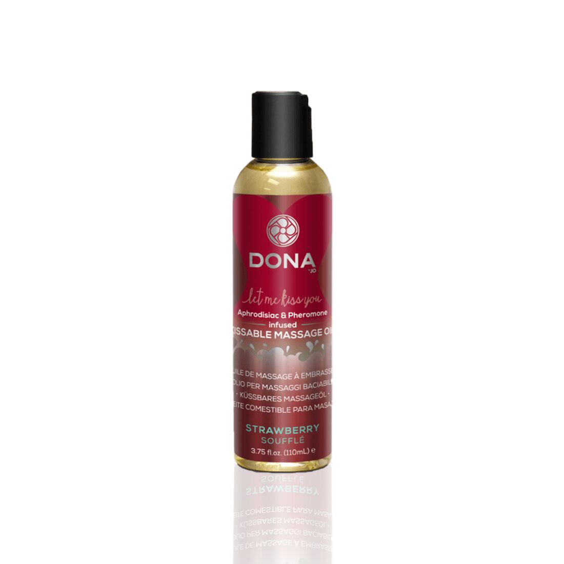 Царство ароматів від DONA дозволяє поринути у світ кохання, бажань та пристрасті. Масажна олія DONA зі смаком Strawberry Souffle, збагачена афродизіаками та феромонами натурального походження, відкриє перед вами нові грані чуттєвості та сексуальної насолоди.