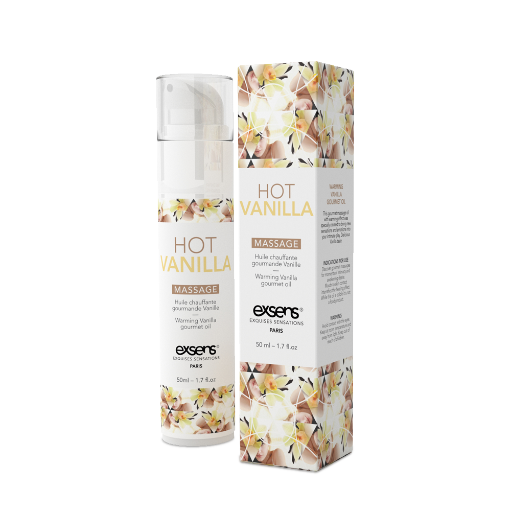 Якщо ви бажаєте привнести в свої інтимні стосунки трохи екзотичної пристрасті, рекомендуємо придбати масажну олію Exsens Hot Vanilla 50 мл. Олія відрізняється неймовірним ванільним ароматом, солодким смаком без хімічної гіркоти і ефектом розігріву, який збільшується при контакті олії з вашим диханням.