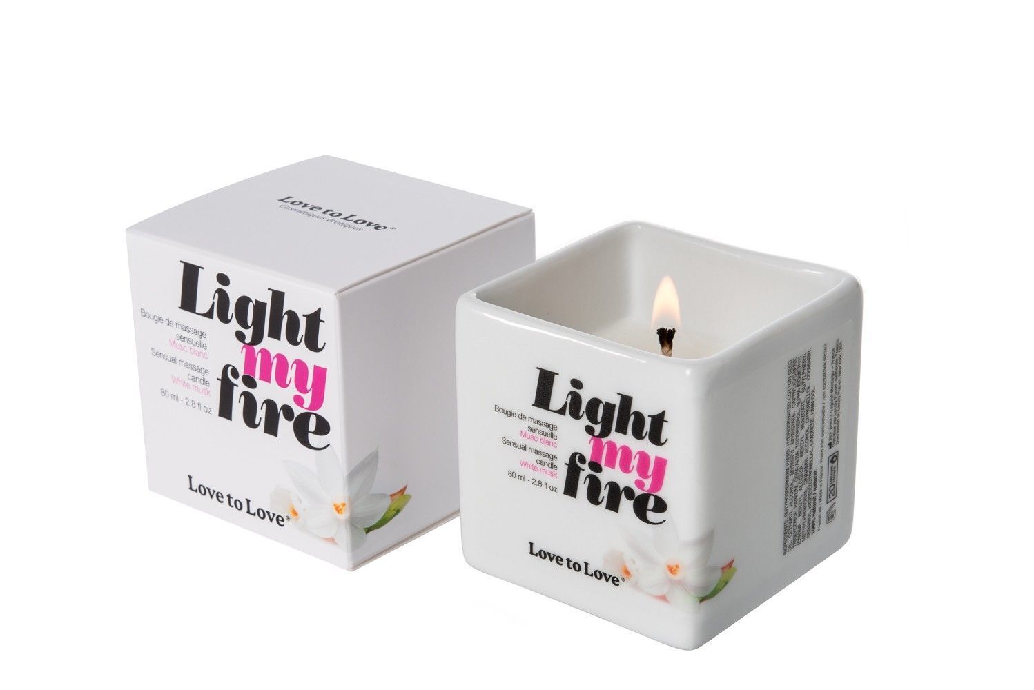 Пропонуємо придбати масажну свічку Love To Love LIGHT MY FIRE Musc. Цей романтичний продукт був створений спеціально для проведення чуттєвого масажу. Ніжний аромат і гаряче полум'я свічки створять розслаблюючу атмосферу і налаштують на потрібний лад.