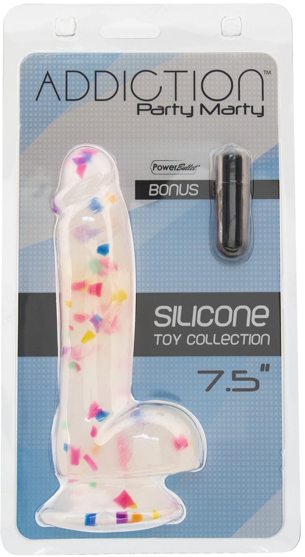 Настав час для вечірки! Хочете розважитися і порадувати партнера — тоді потрібно купити фалоімітатор з конфетті ADDICTION – PARTY MARTY – 7.5" – FROST & CONFETTI. Це неймовірно приваблива модель з матового силікону, з дійсно міцною присоскою і сумісна із більшістю ременів для страпона. Преміальний силікон дуже пружний, ніжний і фантастичний на дотик. Вібропуля для додаткових ігор в комплекті!