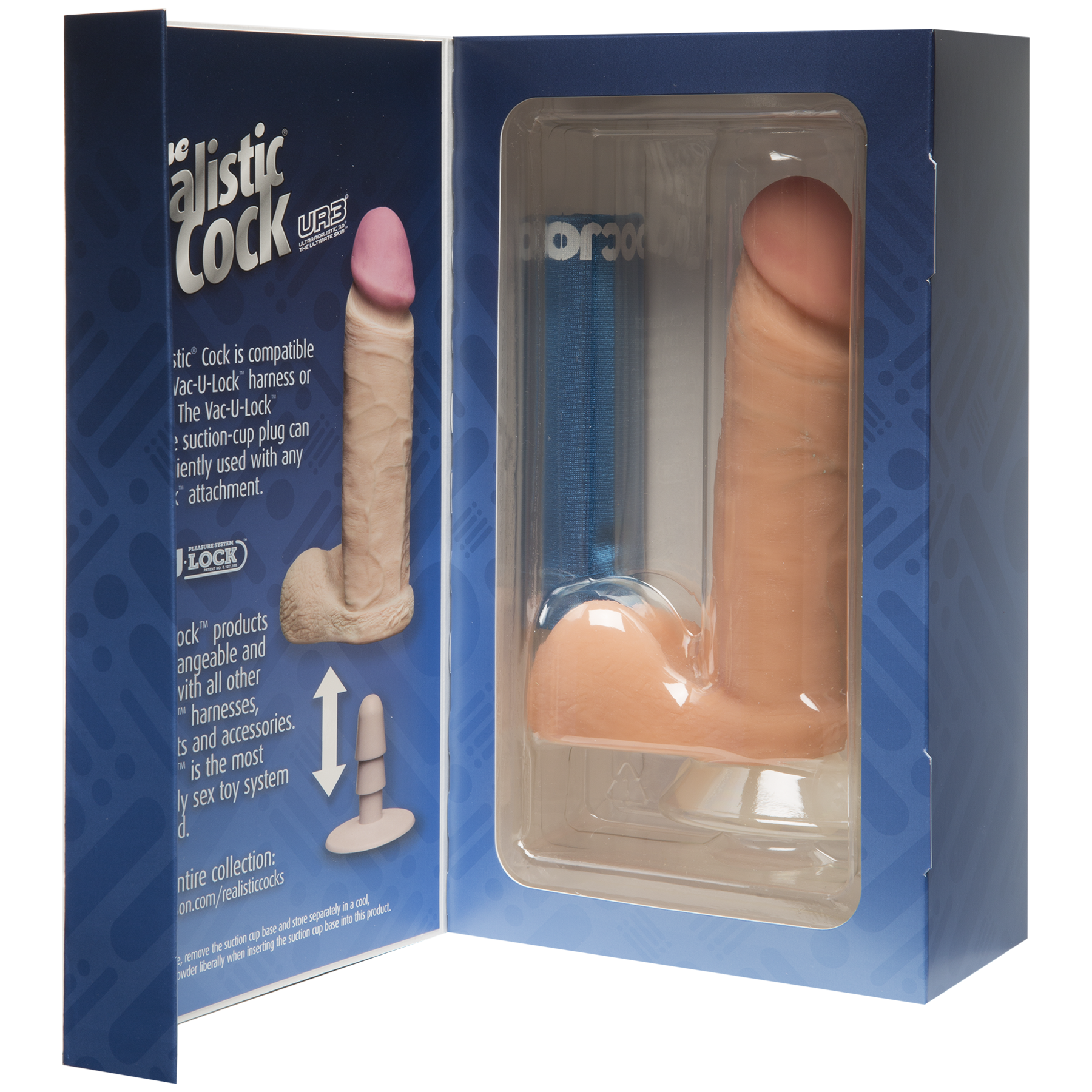 The Realistic Cock 6″ має кріплення Vack-U-Lock, за рахунок чого він повністю сумісний із поясами та іншими аксесуарами для страпонів. Даний фалоімітатор має середні розміри (загальна довжина 173 мм, довжина ввідної частини 157 мм, діаметр 43 мм), а в комплекті з ним йде знімна присоска з Vack-U-Lock кріпленням.