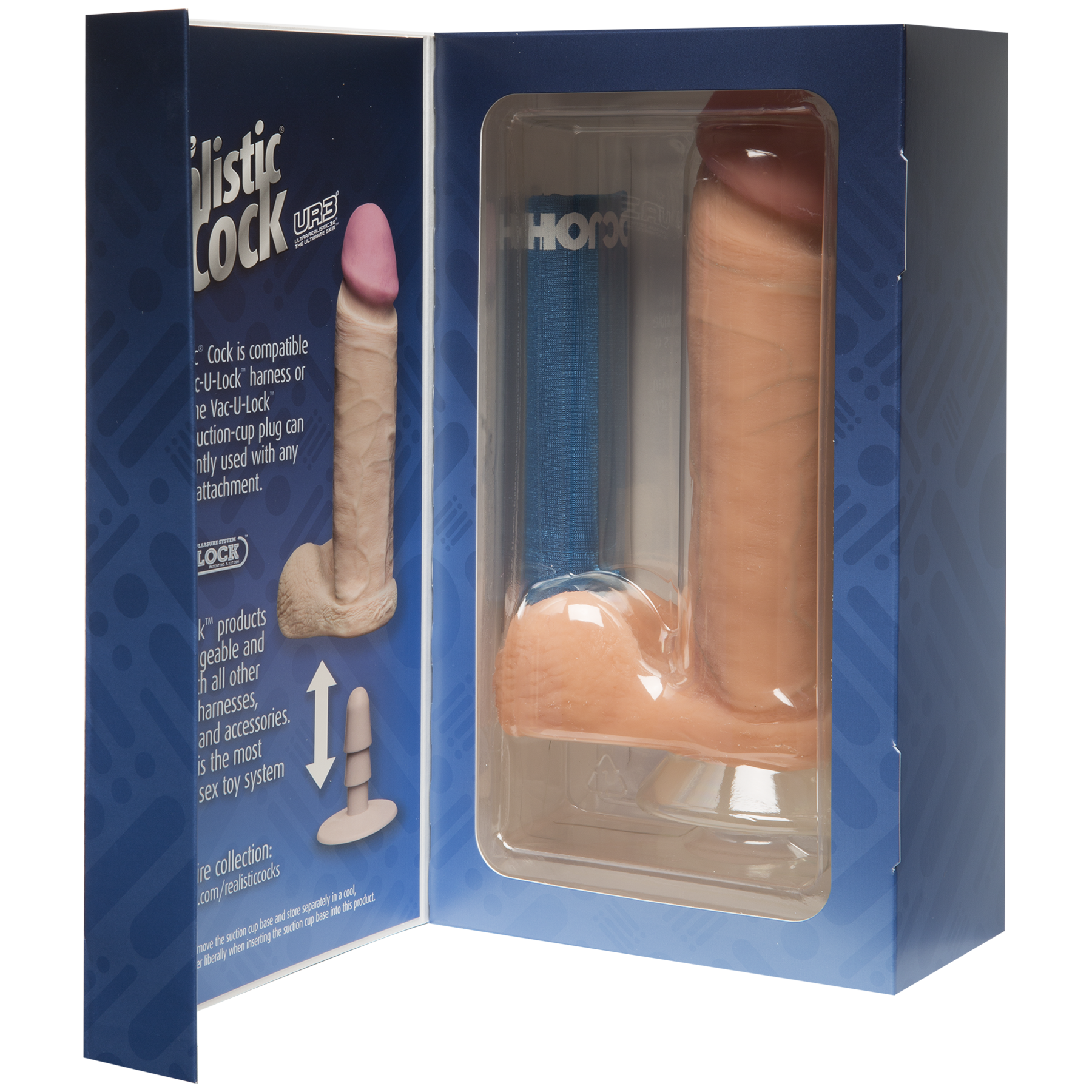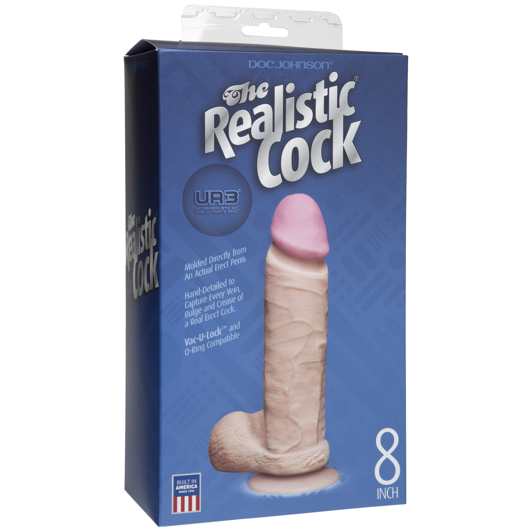 The Realistic Cock 8" має кріплення Vack-U-Lock, за рахунок чого він повністю сумісний з поясами і іншими аксесуарами для страпонів. Даний фалоімітатор має досить значні розміри (загальна довжина 20,5 см, робоча довжина 18,5 см, діаметр 5,1 см), а в комплекті з ним йде знімна присоска з Vack-U-Lock кріпленням.