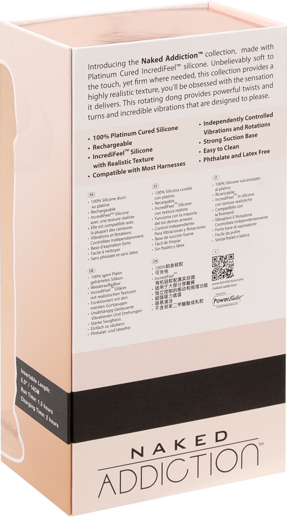 Фалоімітатор з вібрацією та ротацією Naked ADDICTION James 8″ працюватиме до 1 години, після чого його необхідно перезарядити протягом 2 годин. Кабель для заряджання в комплекті. У комплекті також докладна інструкція з керування іграшкою.