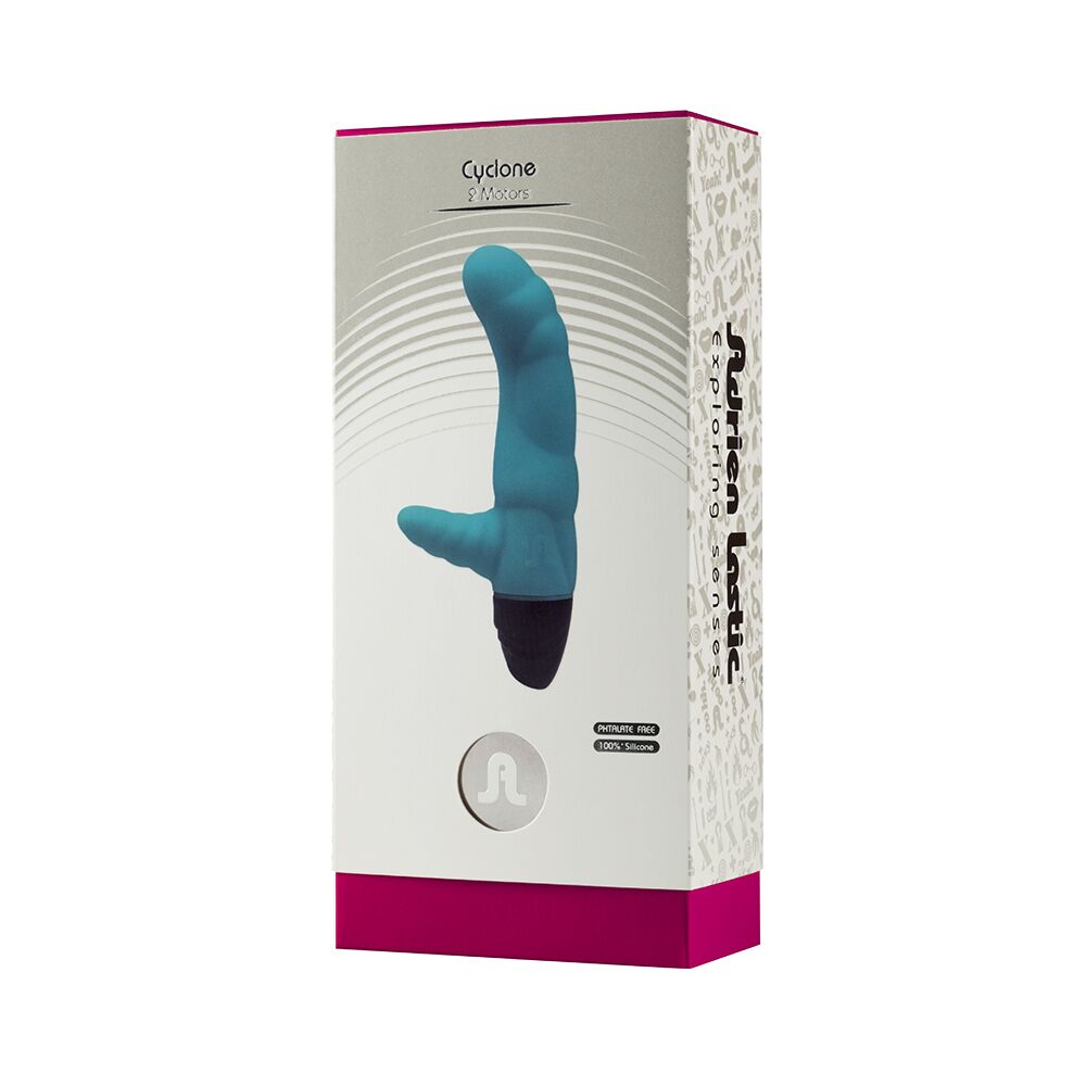 Працює від 2 батарейок ААА (купуються окремо). Виготовлений з силікону, приємний на дотик. Має рельєфну поверхню, а невеликий відросток виконаний у вигляді спіралі. У стимулятора 2 моторчика, практично безшумних. Ви маєте можливість обрати один з 8 режимів вібрації, і насолодитися потужним оргазмом, подарованим вібратором Adrien Lastic Cyclone Blue.