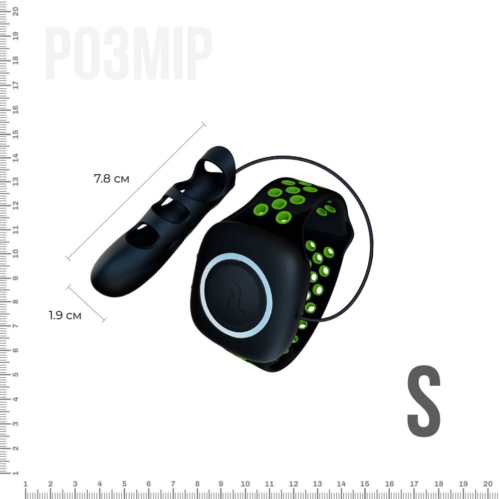 Пульт керування та зарядка знаходяться на спеціальному браслеті, який елегантно кріпиться на зап'ясті і з'єднується з самою насадкою силіконовим шнурком, що забезпечує фіксацію насадки на пальці. Завдяки цьому нам вдалося максимально зменшити розмір самої насадки, що робить її більш зручною і маневреною. Вся вібрація сконцентрована на кінчику пальця. Всього 10 режимів вібрації, який ви переключаєте, натискаючи кнопку на браслеті.