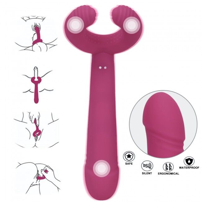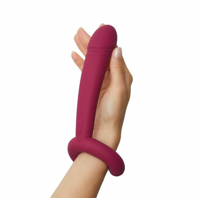 • Закріпивши кільце на пенісі, ручку можна зігнути для подвійного проникнення. Вібруватимуть всі частини іграшки, то ж подвійне задоволення отримають обидва учасники процесу!