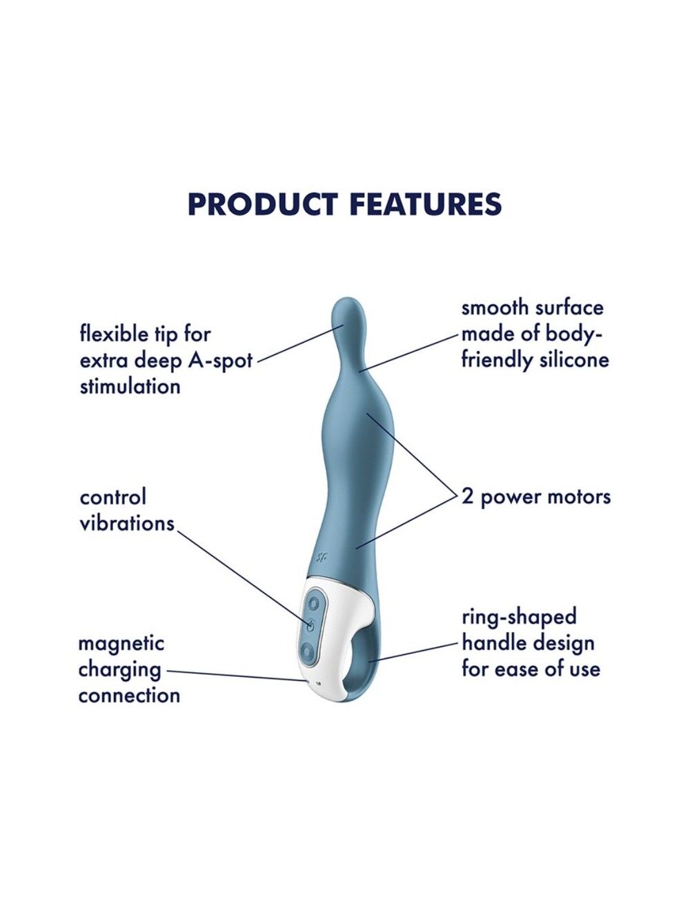 Унікальний дизайн цього вібратора розроблений для стимуляції точки А — скупчення нервових закінчень глибоко на передній стінці піхви. Вплив на неї призводить до швидкого збудження та особливо інтенсивних оргазмів! Вібратор для точки А Satisfyer A-Mazing 1 — це: