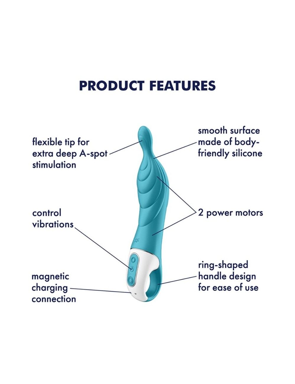 Унікальний дизайн цього вібратора розроблений для стимуляції точки А — скупчення нервових закінчень глибоко на передній стінці піхви. Вплив на неї призводить до швидкого збудження та особливо інтенсивних оргазмів! Вібратор для точки А Satisfyer A-Mazing 2 це: