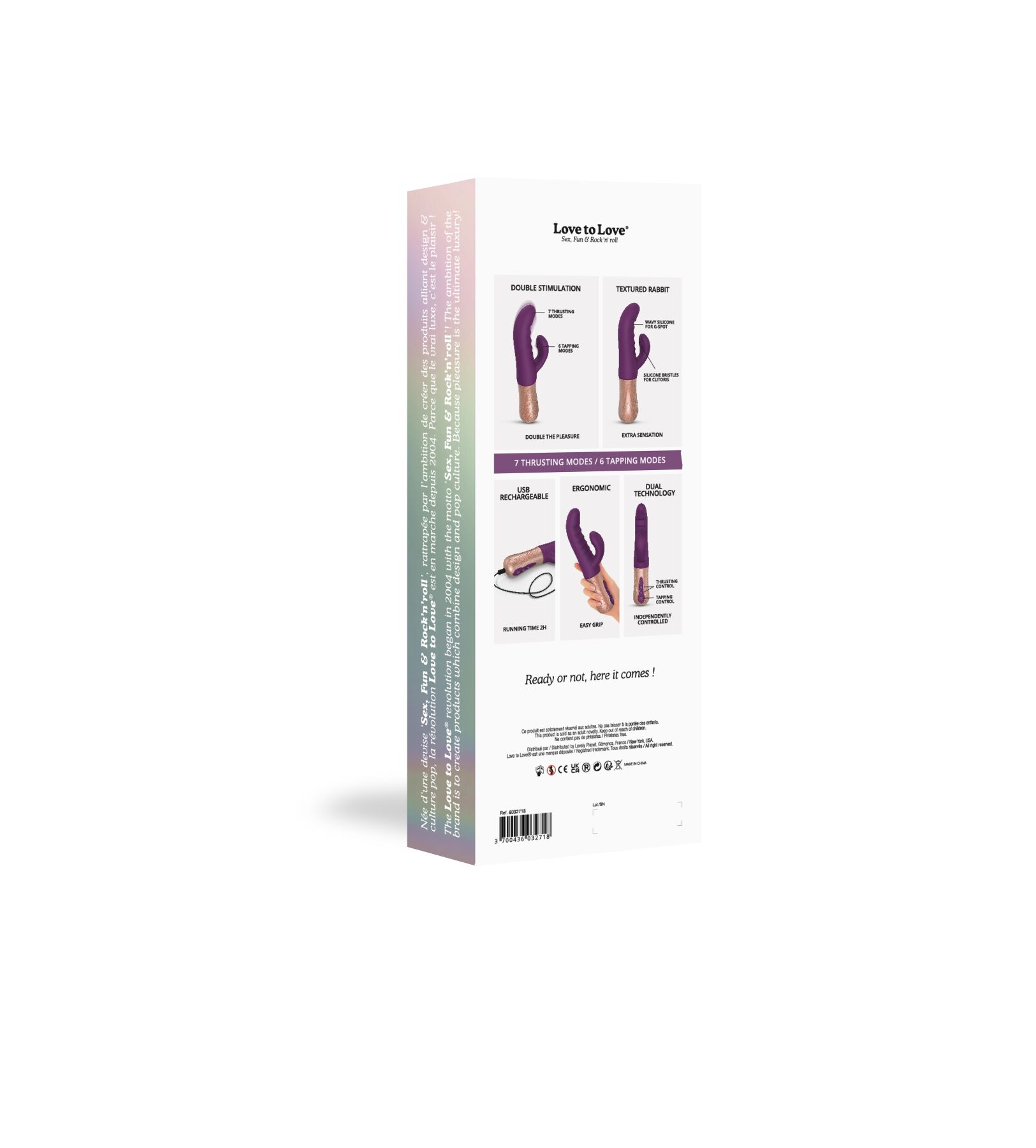 Задовольнить навіть найвибагливіших і найпросунутіших! Пропонуємо купити подвійний пульсатор-кролик Love To Love SASSY BUNNY — унікальний кролик із пульсацією і в стовбурі, й у відростку! Один потужний мотор забезпечує шикарну стимуляцію клітора в 6 режимах, ніби наполегливий пальчик швидко-швидко постукує по заповітній перлині. Другий — стимулює точку G (у 7 режимах) рухами вперед-назад. Мотори працюють повністю незалежно та керуються окремо. Додаткові мікровідростки на кліторальній частині зроблять відчуття ще багатшими! Зручний, комфортний та технологічний.