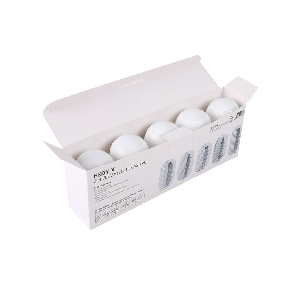 5 яєць, 5 унікальних текстур, 5 нових фантастичних відчуттів — пропонуємо купити набір яєць-мастурбаторів Svakom Hedy X-Mixed Textures, виготовлених з неймовірно реалістичного матеріалу. Спіралі, сегменти, сфери, смуги та хвилі — всі ці пророблені текстури розташовані всередині яєць і стимулюватимуть кожен сантиметр пеніса для вражаючих оргазмів. Але це ще не все! Кожне яйце можна використовувати навиворіт, адже зовнішня текстура кожного яйця також унікальна — ще більше вражень від одного набору. Упаковка є чудовою підставкою для сушіння мастурбатора!