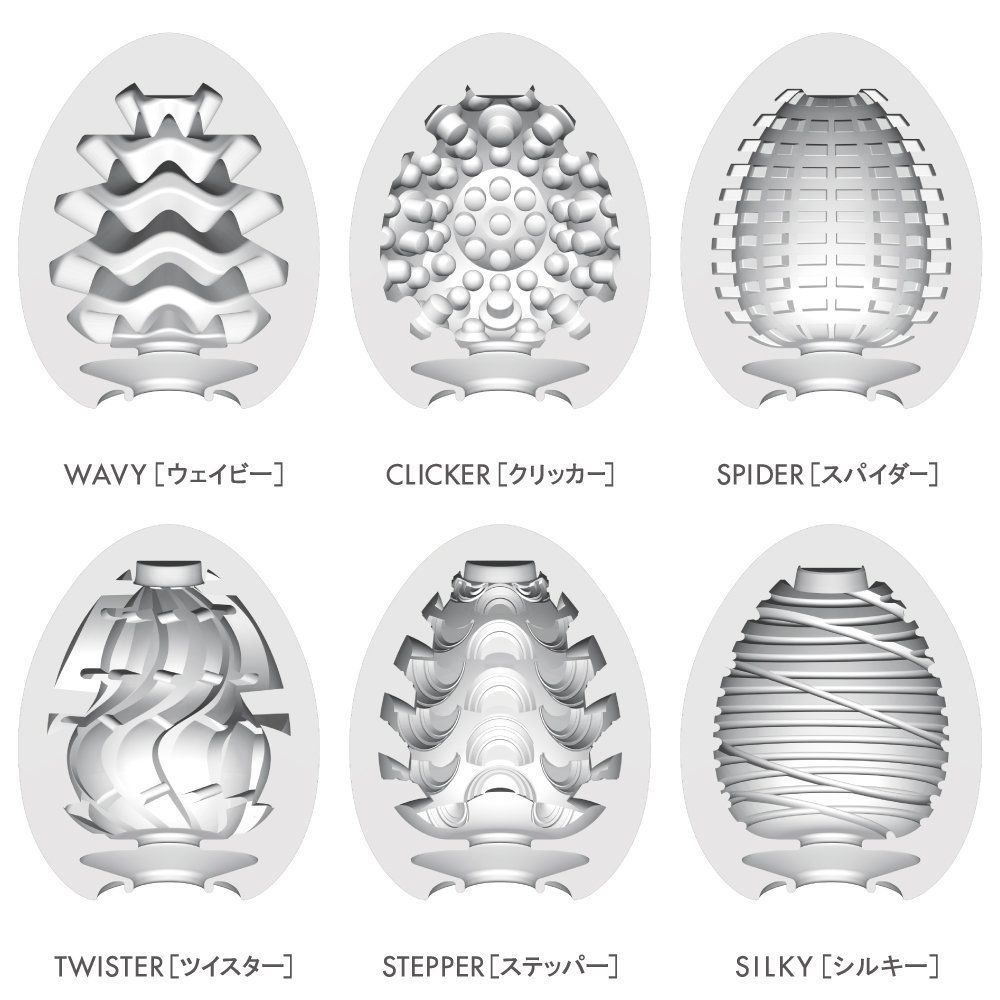 Кожен мастурбатор Tenga Egg має свою оригінальну упаковку та внутрішню текстуру. Шість різних задоволень в одному наборі — це найкраща пропозиція на ринку мастурбаторів. Невеликі на вигляд яйця підходять для чоловіків із будь-яким розміром пенісу — Tenga Egg можуть розтягуватися до 30 см у довжину і 20 см в обхваті. При цьому мастурбатор щільно охоплює стовбур, а також чинить приємний тиск на головку статевого члена.