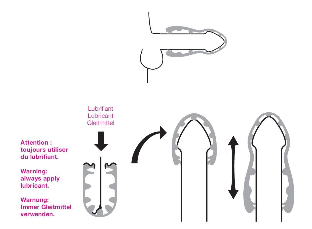 Безліч півсфер, розташованих по внутрішній стороні, забезпечать інтенсивну стимуляцію всій поверхні стовбура і голівки.