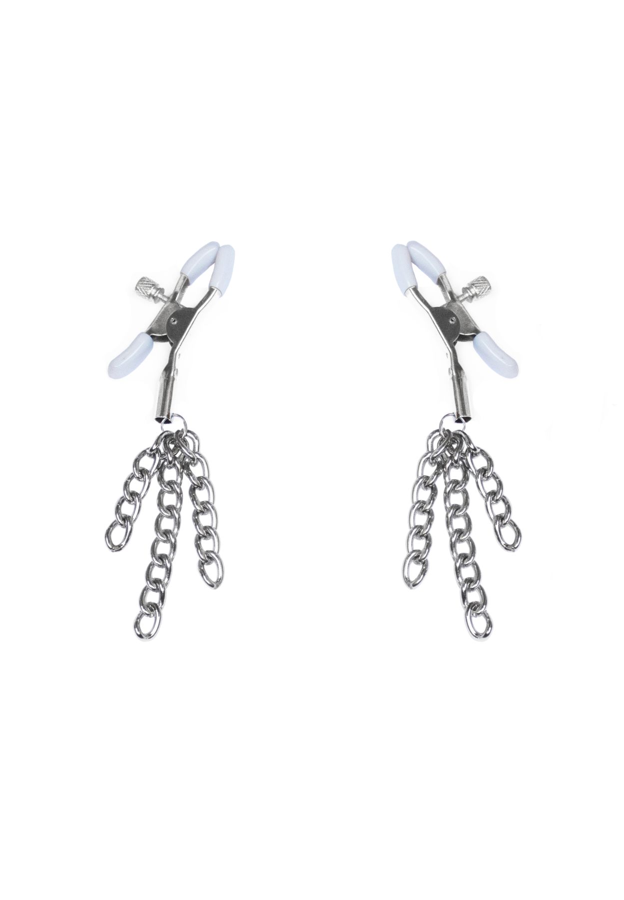 Привабливі затискачі з трьома "пензликами" – ланцюжками і чорно-білими деталями будуть не тільки розкішно виглядати на грудях, але і подарують незабутні відчуття.