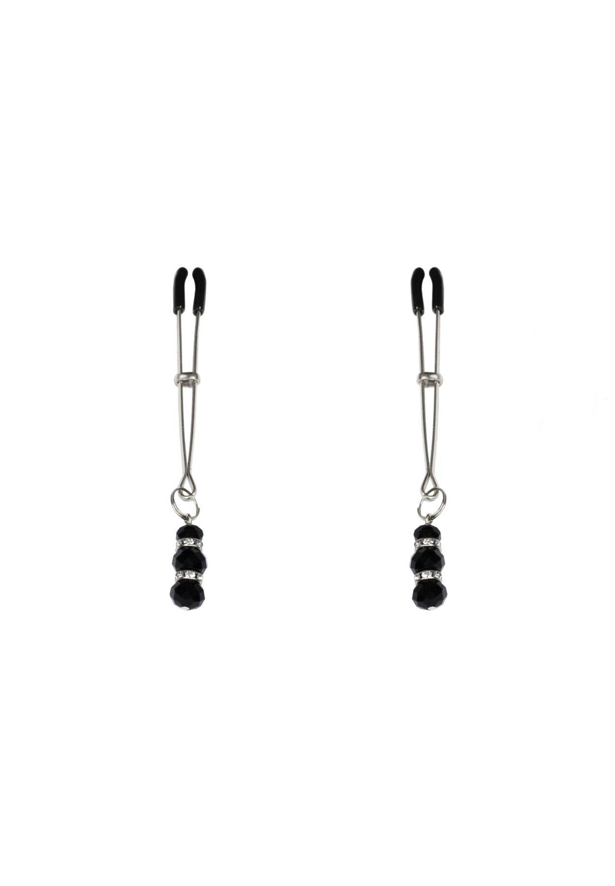 Тонкі затискачі для сосків з підвіскою Feral Feelings – Thin nipple clamps, срібло/чорний