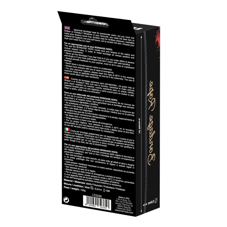 Якщо ви є шанувальником мистецтва шибарі або кінбаку, або просто хочете поекспериментувати зі зв’язуванням партнера під час сексу, вам обов’язково знадобиться мотузка для BDSM MAI Bondage Rope. Для таких практик дуже важливо купити спеціальну мотузку для зв’язування і не використовувати підручні засоби, такі як колготки, мотузка для білизни або нитки для в’язання. Мотузка Bondage Rope від бренду MAI забезпечує вам гігієнічність, не дряпає, не передавлює шкіру та дуже добре тримає вузли.