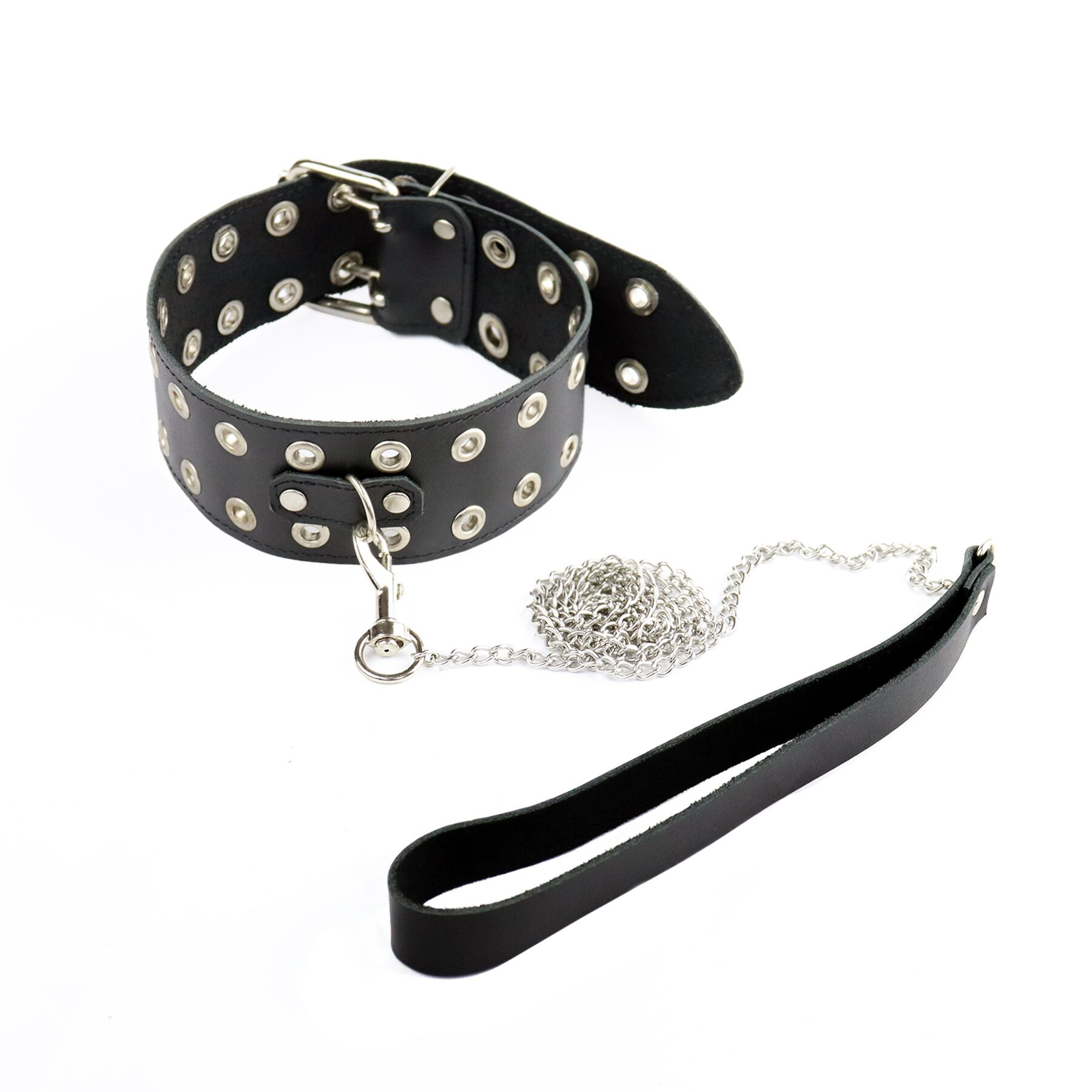 Нашийник Art of Sex – Tessa з повідцем з натуральної шкіри, колір чорний