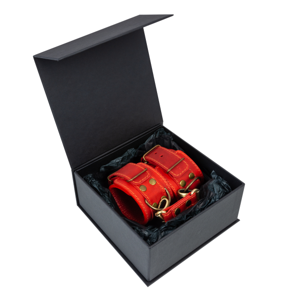 Преміум наручники LOVECRAFT червоні, натуральна шкіра, в подарунковій упаковці