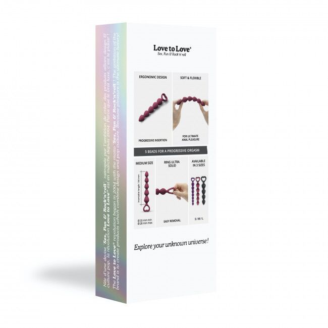 Вводіть анальний ланцюжок Love To Love BING BANG по одній намистині або весь одразу — тільки обирати інтенсивність задоволення! Не забувайте використовувати змазку на водній основі та промивати іграшку теплою водою після кожного використання.