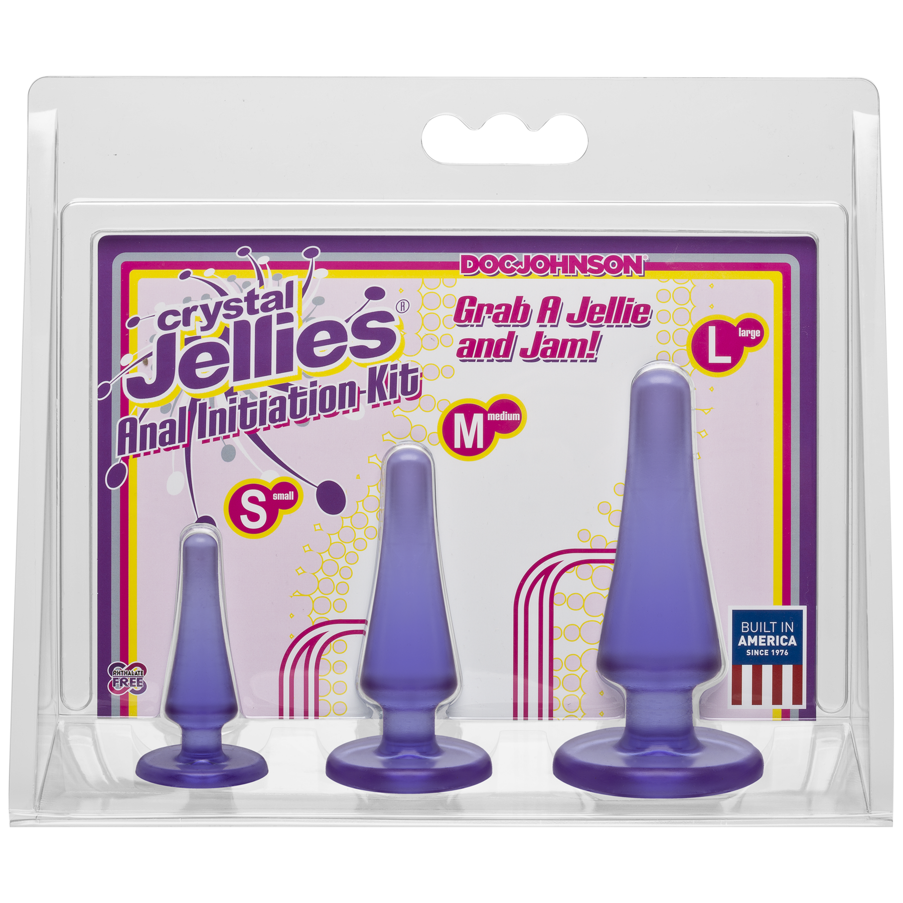 Пропонуємо придбати набір анальних пробок Doc Johnson Crystal Jellies Anal Initiation Kit. Стимулятори мають плоску основу, яка одночасно служить безпечним обмежувачем. Набір виконаний з сучасного гіпоалергенного матеріалу з додаванням антибактеріальної формули Sil-A-Gel. У наборі три класичні пробочки для анальної стимуляції. Форма конусоподібна, з безпечним розширенням до низу і обмежувачем. Цей набір ідеальний і для новачків, які тільки відкривають для себе світ анальних насолод, і для більш досвідчених партнерів – для стимуляції ануса перед сексом або використання під час класичної близькості. Анальні втулки виготовлені з приємного прозорого еластомеру, помірно пружні і гнучкі для комфортного введення.