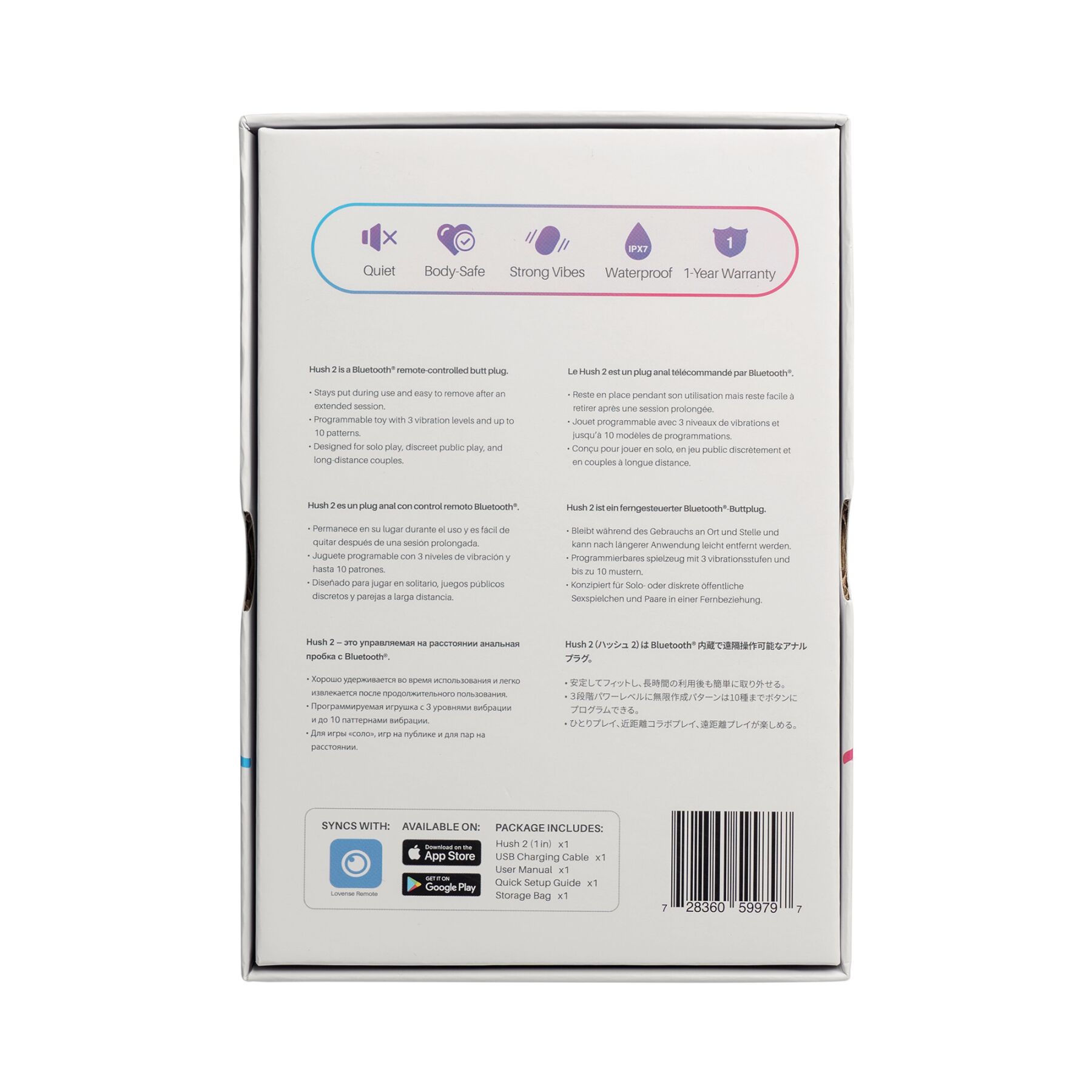 Анальна смарт-вібропробка Lovense Hush 2 — універсальна іграшка, яка сподобається і чоловікам, і жінкам. Виготовлена ​​зі 100 % силікону та абсолютно безпечна.