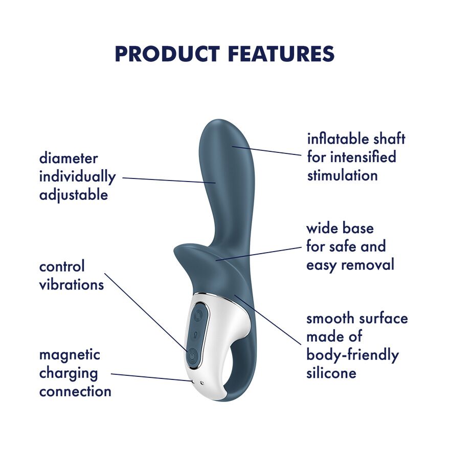 Любите анальну стимуляцію і давно хочете спробувати щось незвичайне? Тоді саме час купити анальний вібратор Satisfyer Air Pump Booty 2 з надувним стовбуром. Така функція дає змогу, по-перше, змінювати діаметр ввідної частини за своїм бажанням, а по-друге, дарує незвичайні відчуття, коли вібратор буквально росте всередині вас. Під час натискання кнопки «надування» відбувається підкачування повітря і головка вібратора надувається рівно до того моменту, поки ви не відпустите кнопку (максимум — до діаметра 4,5 см). У надутому вигляді вібратор стає м’яким і пружним, створюючи приємне відчуття заповненості. Крім того, вібратор працює у 12 режимах вібрації, так що ви можете поєднувати надування стовбура з вібрацією або насолоджуватися обома функціями почергово.