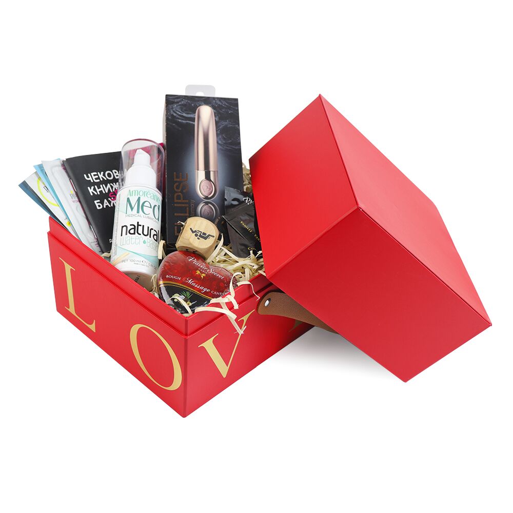 Зупиняючи вибір на наших подарункових наборах, ви заощаджуєте не тільки час, але й отримуєте комплект секс-іграшок, лубрикантів та інших товарів на 15% дешевше. Наші набори будуть радувати вас і вашого партнера не один вечір, перетворюючи вашу любовну гру на незабутню пригоду. Упакований в елегантну червону коробку із щільного картону з романтичним написом "LOVE" та ручкою зі штучної шкіри, набір стане шикарним подарунком з будь-якого приводу.