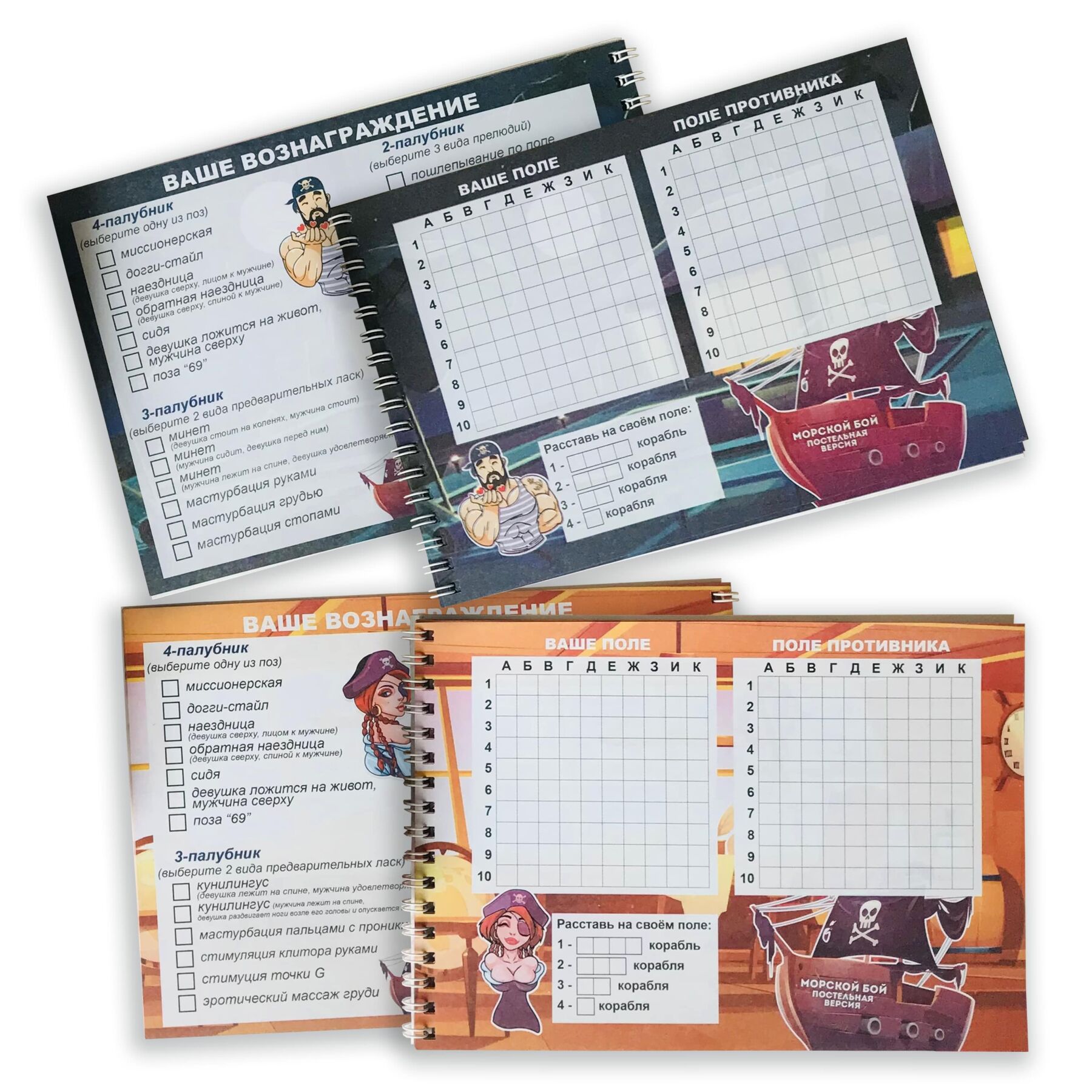 Ви коли-небудь грали в морський бій? Ну звичайно, адже це розвага здатна захопити не на одну годину! А якщо це буде морський бій для дорослих, де за кожен підбитий корабель передбачена еротична винагорода? Пропонуємо купити еротичну гру "Морський бій. Постільна версія", яка не тільки допоможе весело провести час, а й зблизить вас з партнером і допоможе краще пізнати сексуальні забаганки один одного. Вам знадобиться тільки ручка і трохи сміливості — і вперед, на абордаж!