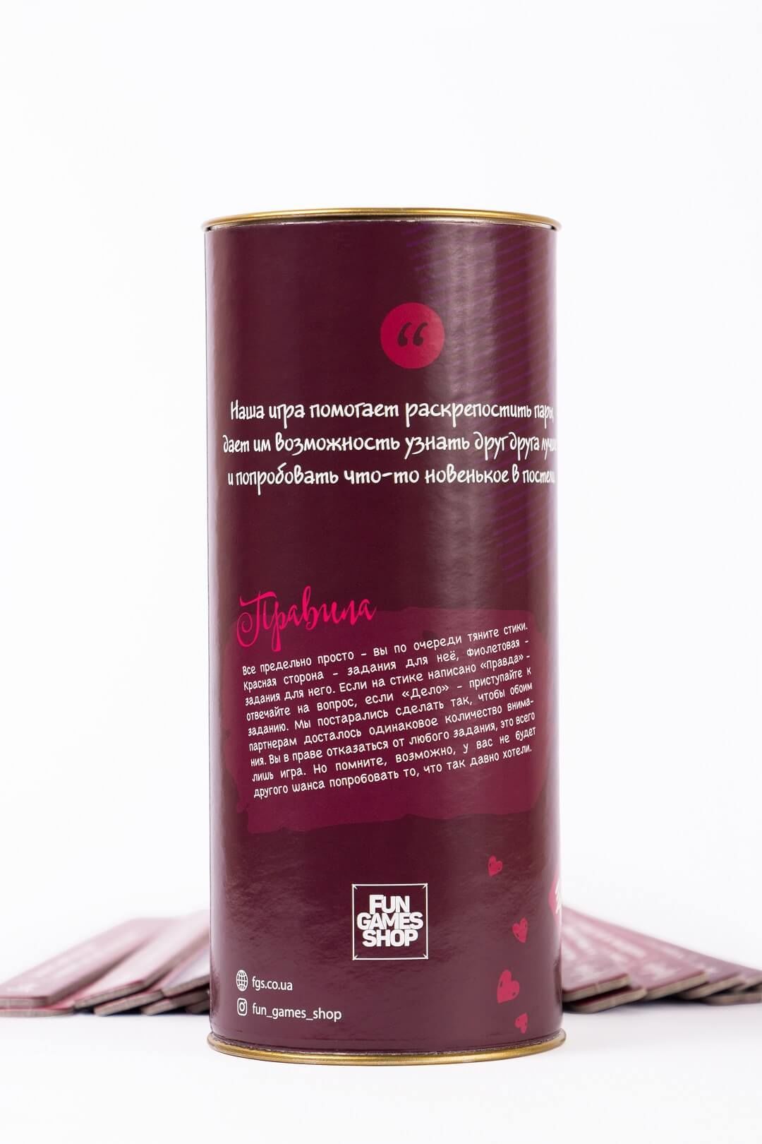 Стисло про правила: Все гранично просто – ви по черзі тягніть стіки. Червона сторона – завдання для неї, Синя – завдання для нього. Якщо на стику написано «Правда» – відповідайте на питання, якщо «Дія» – приступайте до завдання. Ми постаралися зробити так, щоб обом партнерам дісталось однакова кількість уваги. Ви в праві відмовитися від будь-якого завдання, це всього лише гра. Але пам'ятайте, можливо, у вас не буде іншого шансу спробувати те, що так давно бажали.