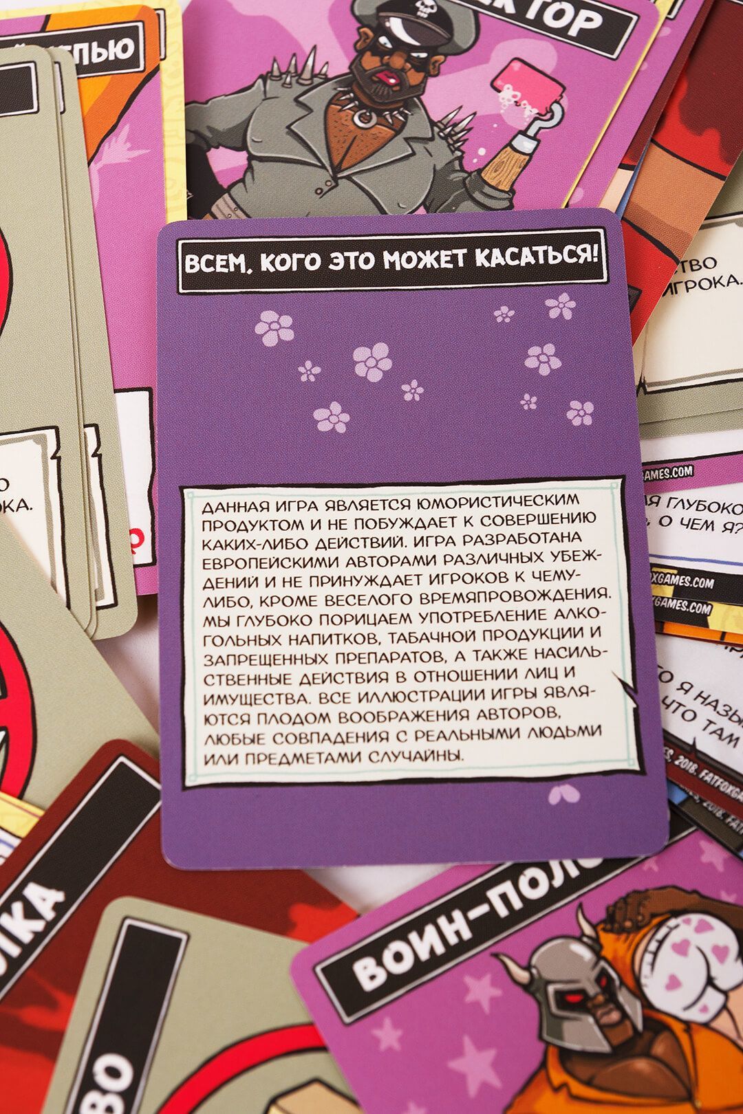 ВАЖЛИВО! Ця гра є гумористичним продуктом і не спонукає до вчинення будь-яких дій. Гра розроблена європейськими авторами різних переконань і не примушує гравців до будь-чого, окрім веселого проведення часу. Ми глибоко засуджуємо вживання алкогольних напоїв, тютюнових виробів і заборонених препаратів, а також насильницькі дії по відношенню до осіб і майна. Всі ілюстрації гри є плодом уяви авторів, будь-які збіги з реальними людьми або предметами випадкові.