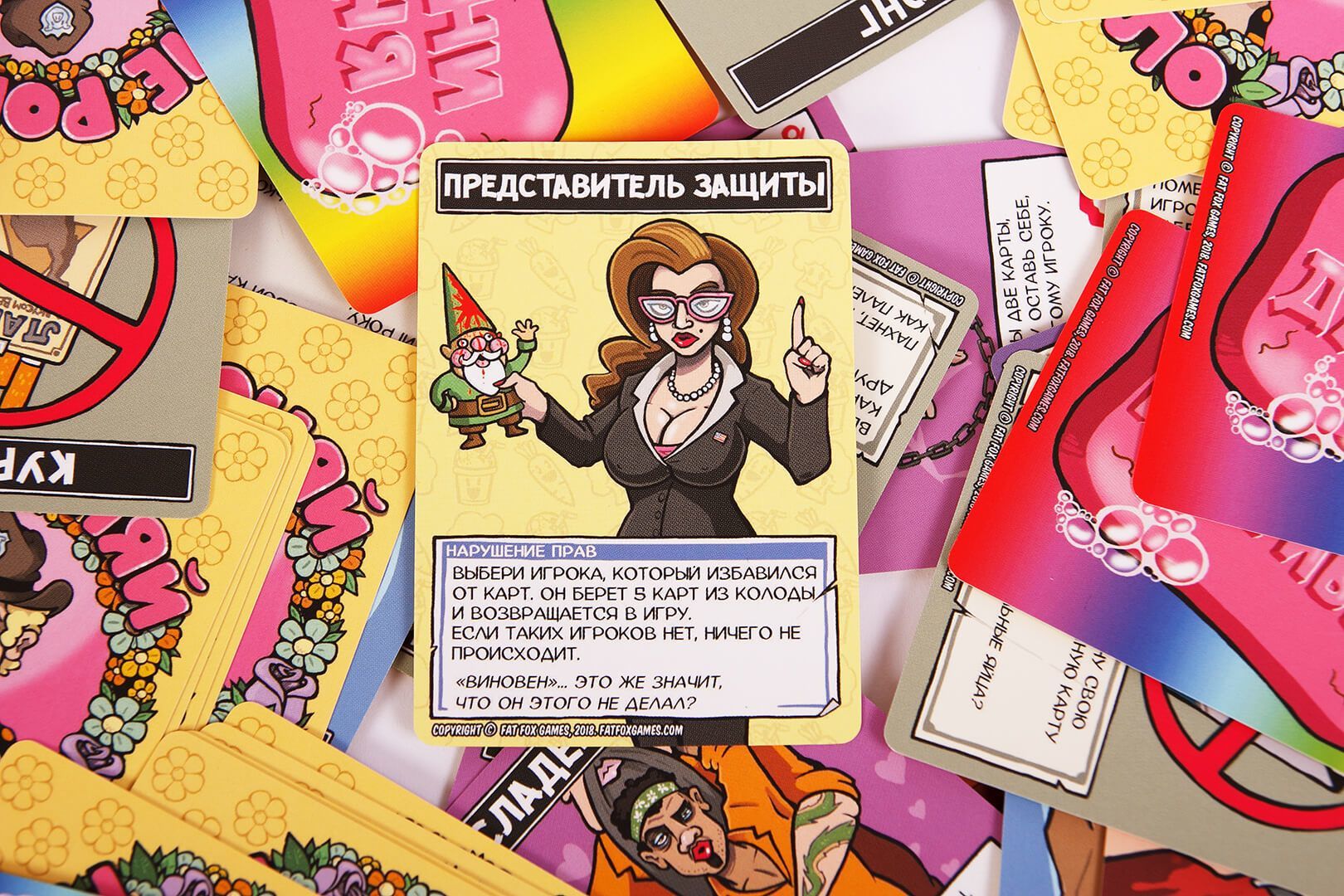 – Є кілька карт (наприклад, «Адвокатеса»), метою яких є можливість вибрати гравця в «чистій зоні»;