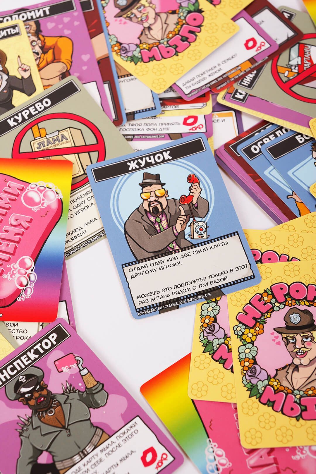 Стисло про правила: Хтось із гравців бере на себе роль дилера. Він знаходить одну карту мила у колоді і видає її гравцеві з найгарнішою дупою. Після цього дилер перемішує колоду і видає по 5 випадкових карт кожному гравцеві (або по 4, якщо ви граєте вшістьох). Решту карт потрібно покласти стопкою по центру столу сорочкою вгору – це колода. Гра починається – гравець, якому було видано окреме мило, ходить першим. Гравці ходять по черзі за годинниковою стрілкою і в свій хід розігрують одну карту з руки (тільки одну). Ця карта відправляється в скидання (окрема стопка карт, що лежать в відкриту поруч з колодою), і після цього розігрується її ефект. Не потрібно добирати в руку карти з колоди, якщо цього не сказано в розіграній карті. Карти мила розігруються, тільки якщо у вас більше немає ніяких варіантів – ви кидаєте мило, упс!