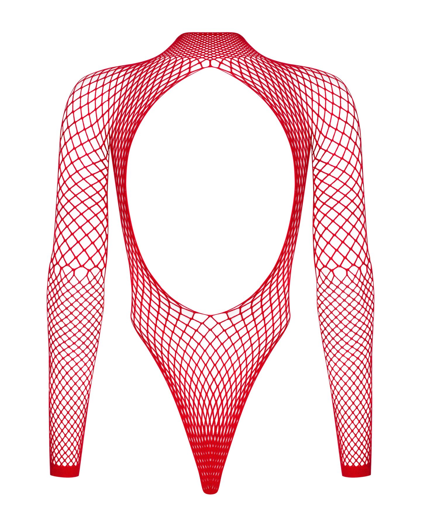 Сітчастий бодістокінг із довгим рукавом Obsessive B126 teddy red XL/XXL, червоний