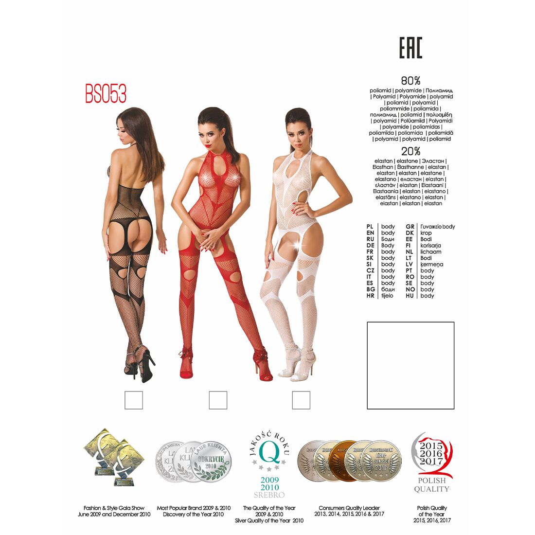 Всі моделі білизни виготовляються з якісних європейських матеріалів: при правильному догляді вони не розтягуються і не сідають після прання, не втрачають свій колір і первинний вигляд. Бодістокінги від польського бренду Passion допоможуть вам виглядати сексуально і привабливо у будь-якій ситуації.