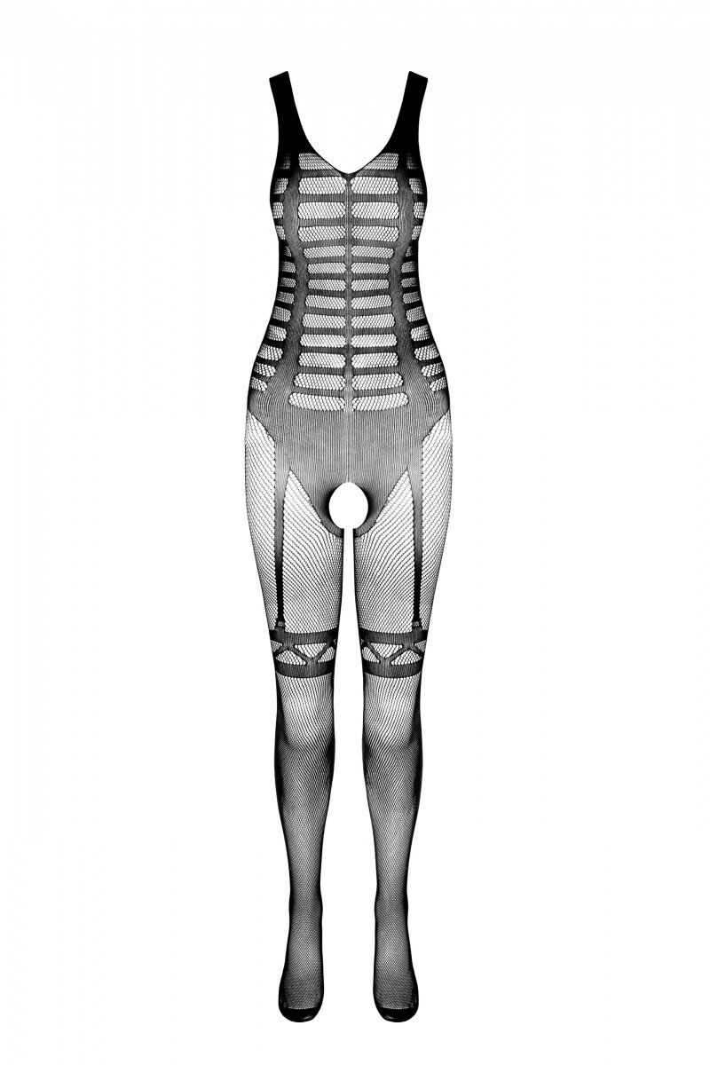 Неординарний сітчастий чорний бодістокінг-боді з симетричним малюнком Casmir CA005 ідеально облягає ваше тіло та вимальовує гарний силует. Геометричний візерунок боді, з чітко промальованими правильними лініями, розставляє акценти на грудях та стегнах. Поєднання напівпрозорого та щільного плетіння робить талію вуже. Ніжки, завдяки елегантному малюнку підв'язок, здаються стрункішими. Доповніть комбінезон нижньою білизною і його можна носити під повсякденним одягом. З відповідними аксесуарами та туфлями на високих підборах, ви отримаєте еротичне вбрання для романтичного вечора.
