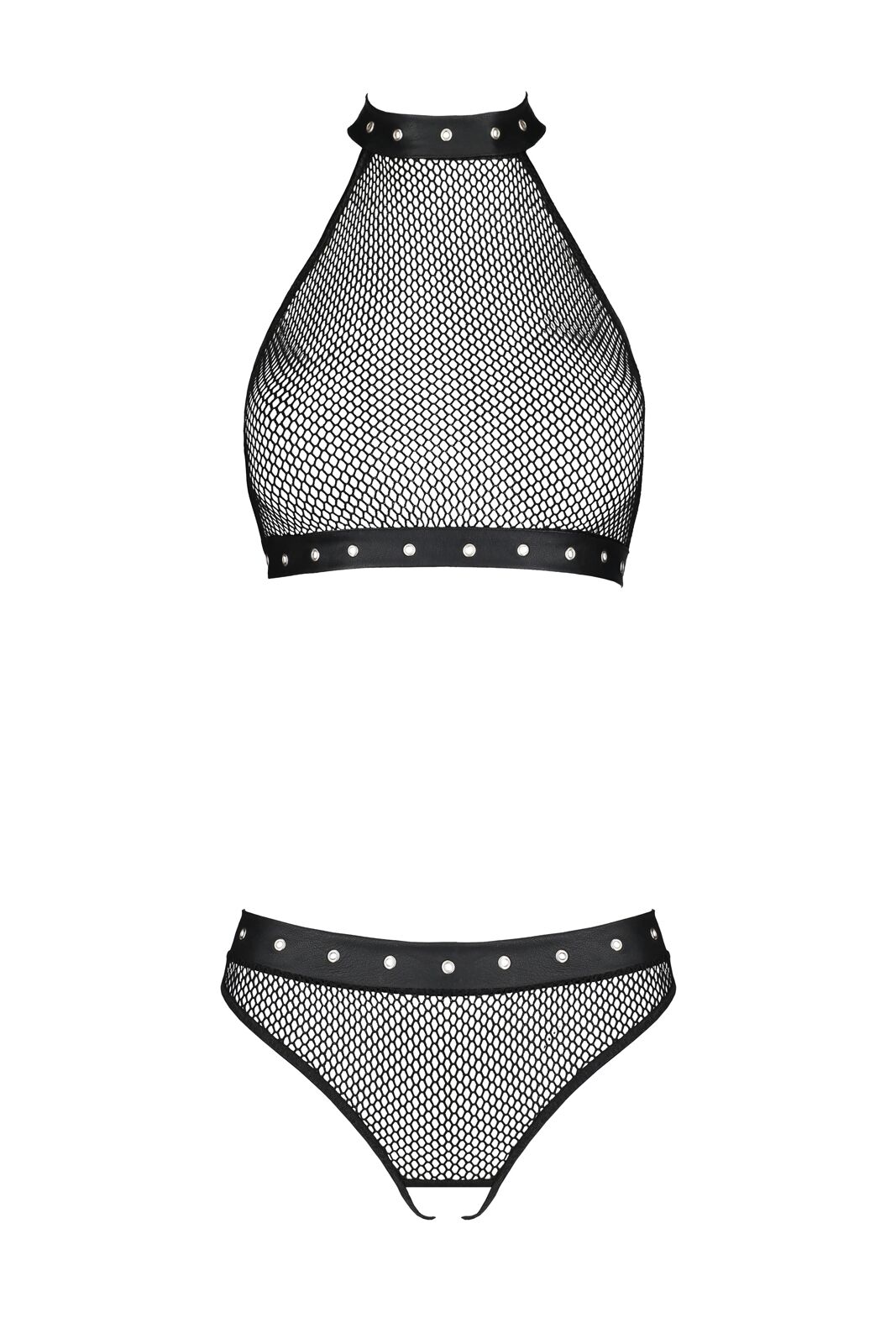 У комплекті ви знайдете топ, а також трусики з відкритим доступом та завищеною талією. Топ доповнюється застібкою у вигляді вишуканого чокера, є виріз під бюст, що змушує уяву працювати з новою силою. Прозора сіточка викличе в чоловіка непереборне бажання, адже перед ним відкриється завіса чуттєвої таємниці. Підігнати білизну легко, адже трусики оснащені застібкою ззаду. Округлість сідниць чудово підкреслена вирізом у формі перевернутого трикутника. Промежина трусиків відкрита, тому образ вийде неймовірно сексуальним.