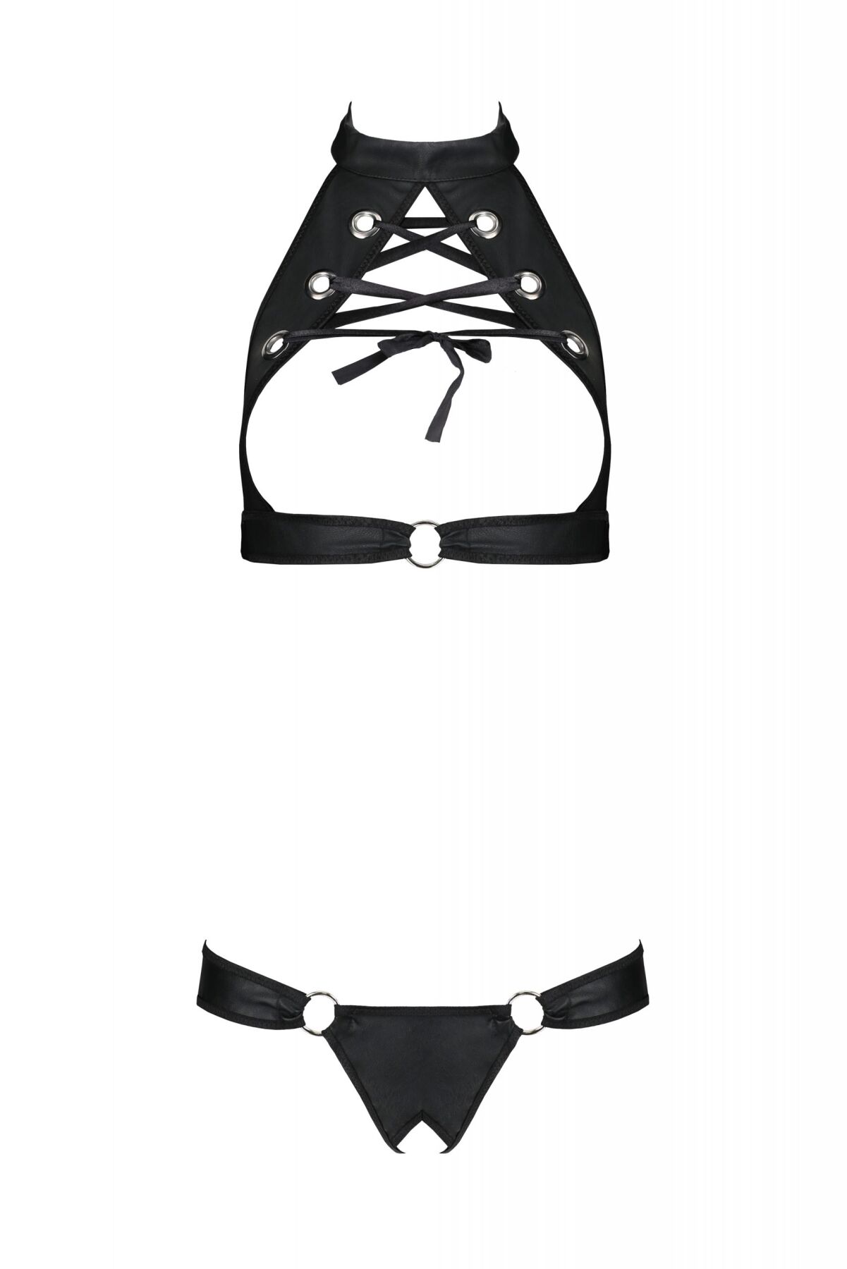 Комплект із екошкіри Passion Malwia Set with Open Bra 6XL/7XL black, топ та трусики з люверсами