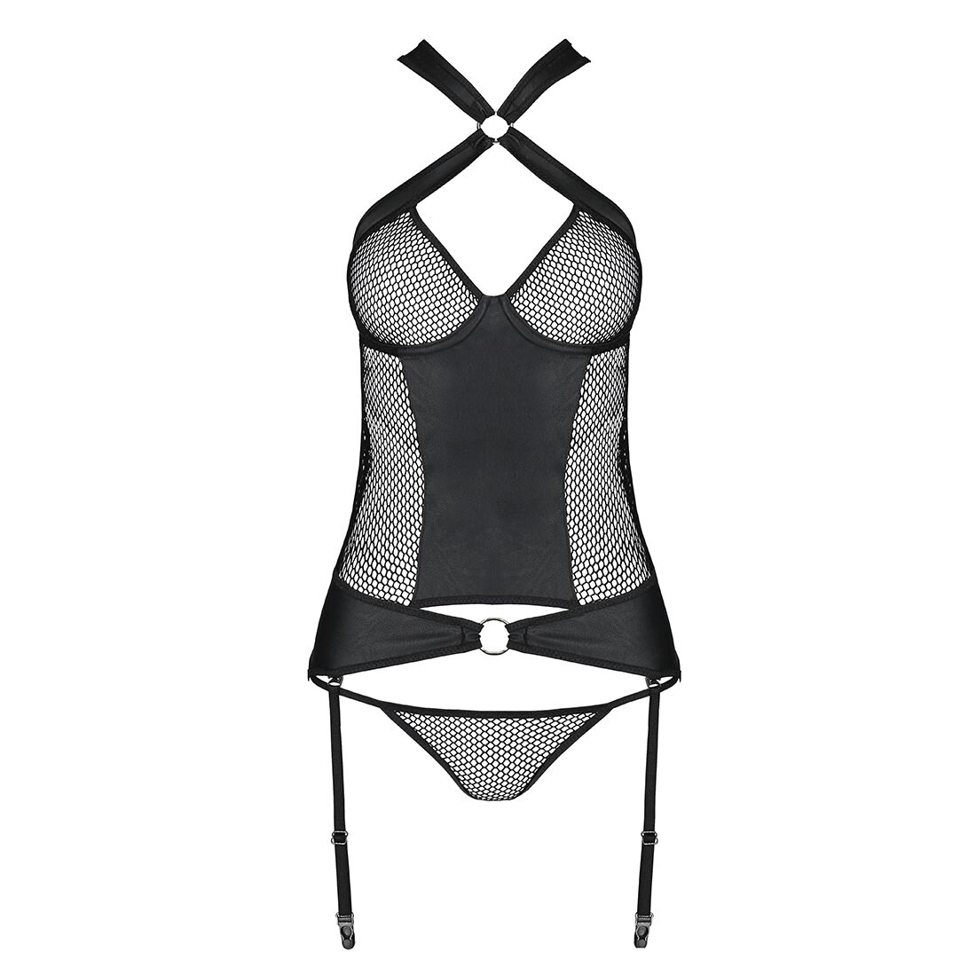 Сітчастий комплект корсет з халтером, зйомні підв’язки та трусики Amanda Corset black XXL/XXXL – Pas