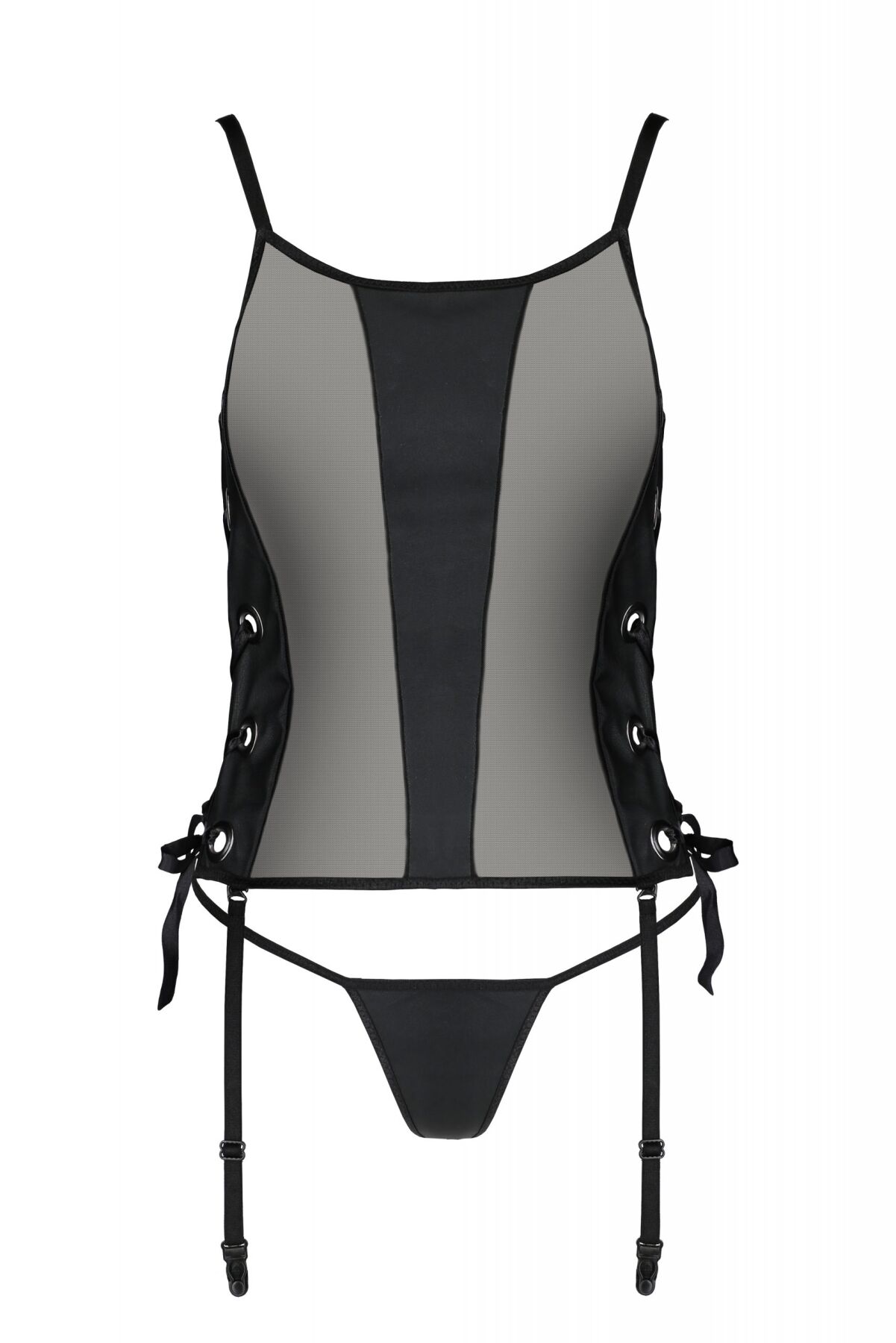 Сітчастий корсет з екошкіри Passion Malwia Corset 4XL/5XL black, з люверсами та знімними пажами
