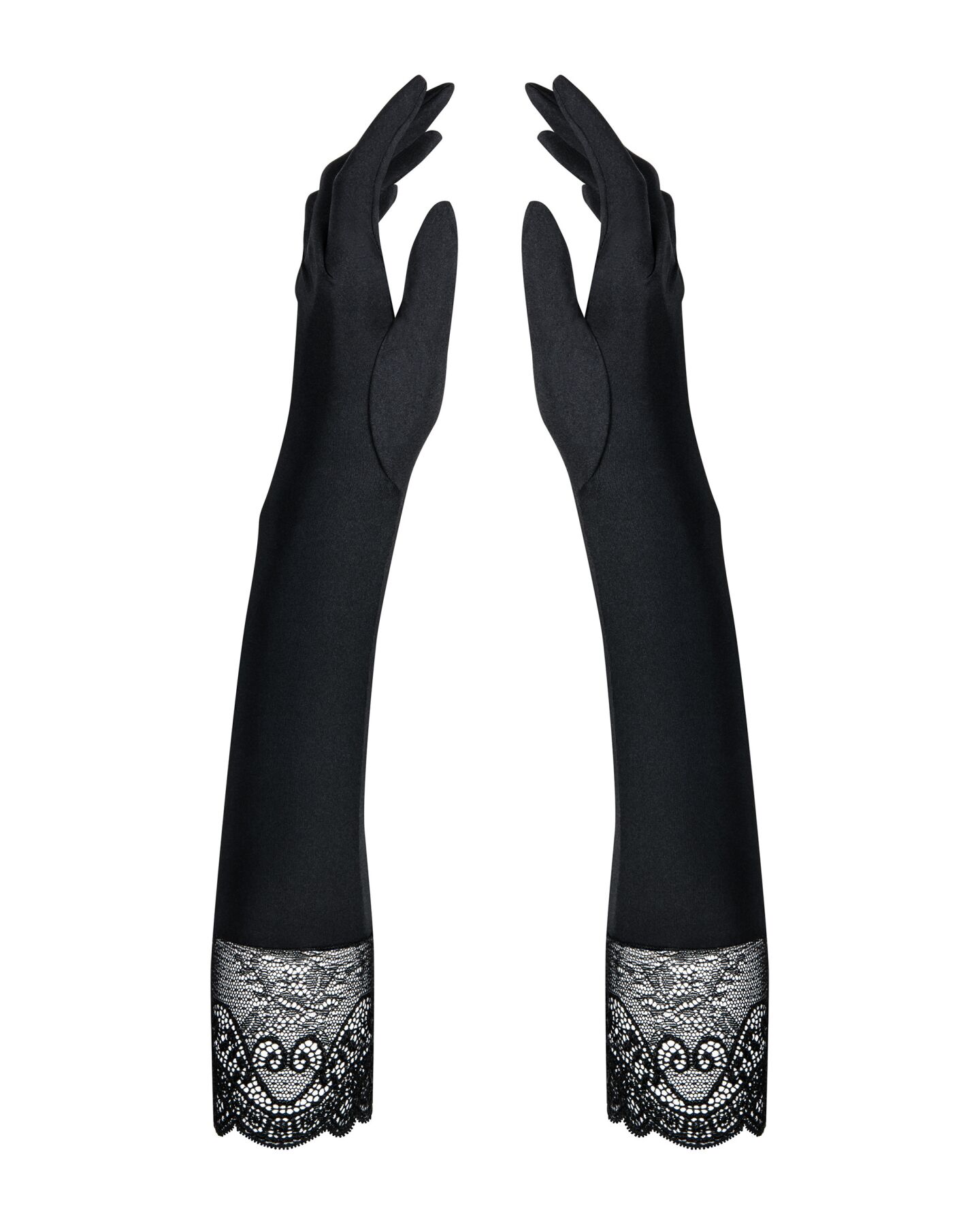 Високі рукавички з каменями та мереживом Obsessive Miamor gloves, black