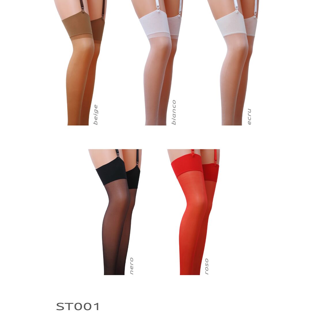 Класичні панчохи під пояс із широкою гумкою ST001 5 roso – Passion, з еластичного напівпрозорого матеріалу, ідеально сідають на ніжки, роблячи їх ще більш привабливими. Класичний дизайн і щільність всього 17 den, дозволять вам одягнути ці панчохи під комплекти білизни з мережива, шкіри чи латексу. Завдяки м'якій тканині, гумка панчох не передавлюватиме ніжку і підійдуть навіть під облягаючу сукню або спідницю.