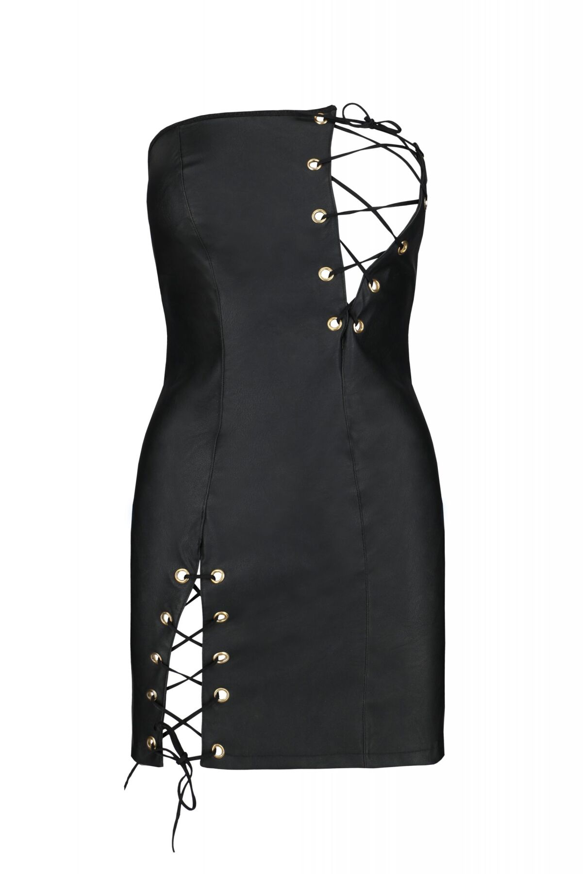 Шукаєте особливу сукню для особливого випадку? Тоді рекомендуємо вам купити мінісукню з екошкіри Passion Celine Chemise 4XL/5XL. Запаморочлива сукня з колекції Passion Plus Size без бретелей із матеріалу, що імітує шкіру, вражає оригінальним дизайном із родзинкою у вигляді шнурівки на грудях та ніжці.