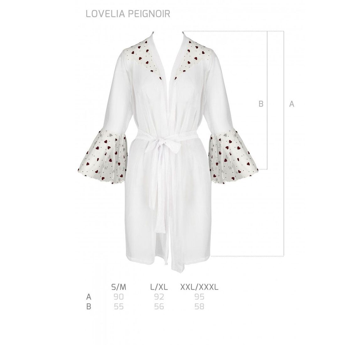 Розмір L/XL: загальна довжина пеньюара 92 см, довжина рукава 56 см