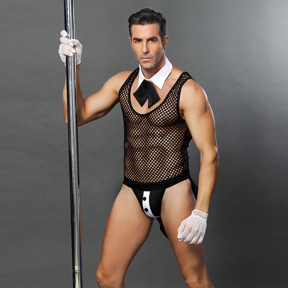 Офіціанте, принесіть замовлення і залишайтеся з нами! Такого офіціанта неможливо відпустити просто так, адже він страшенно спокусливо виглядає. Пропонуємо купити еротичний костюм офіціанта “Гарячий Деніел”, щоб перетворитися на сексуального та завжди готового допомогти сексуального хлопця. Майка-сітка, труси-манішка, рукавички та комір — все це створює хвилюючий образ, який нікого не залишить байдужим.