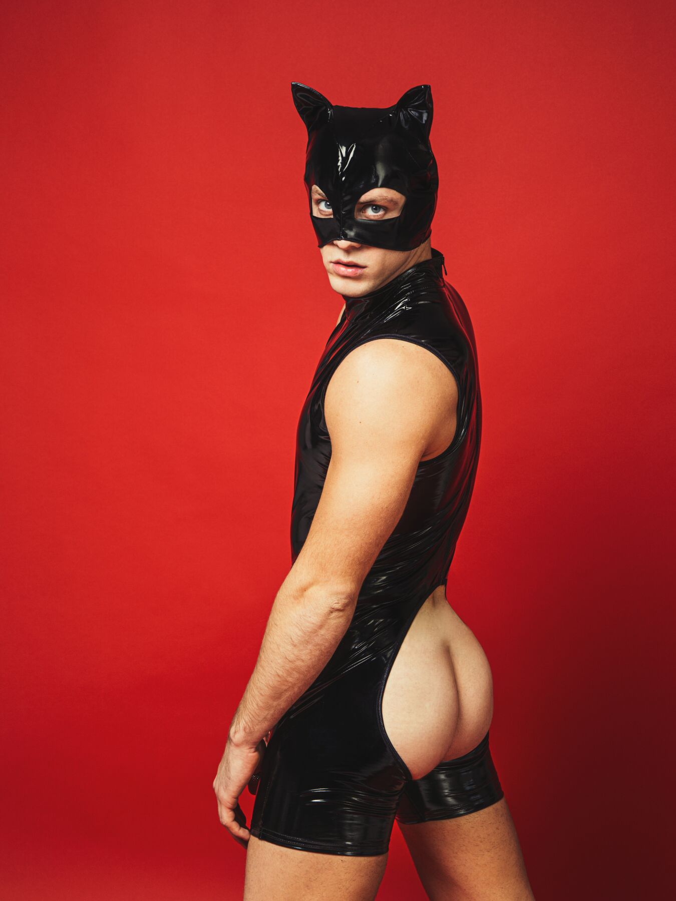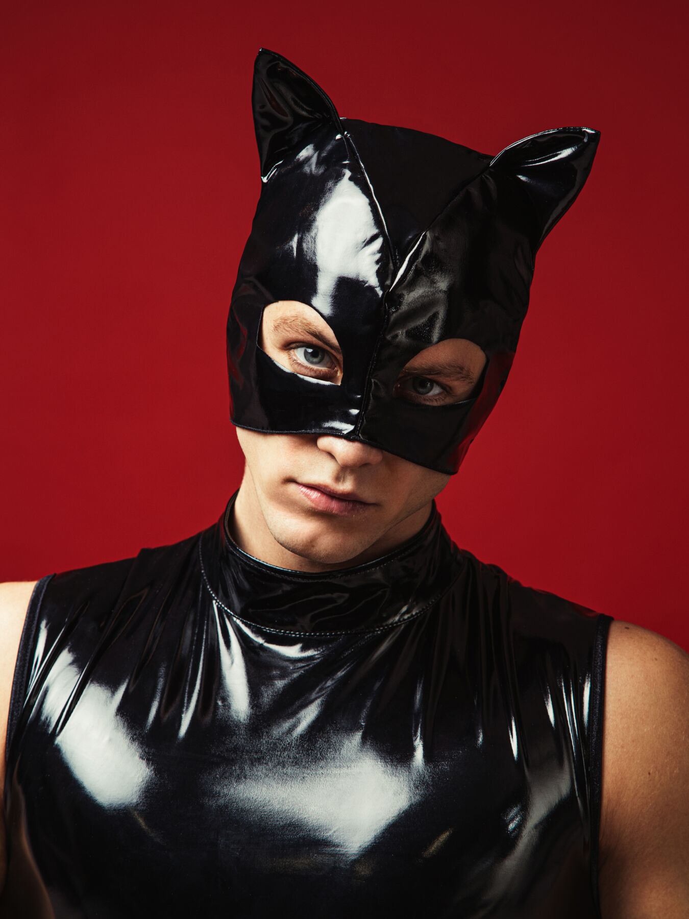 блискучий еластичний матеріал, що імітує лаковану шкіру, щільно прилягає до голови та повторює всі вигини;
