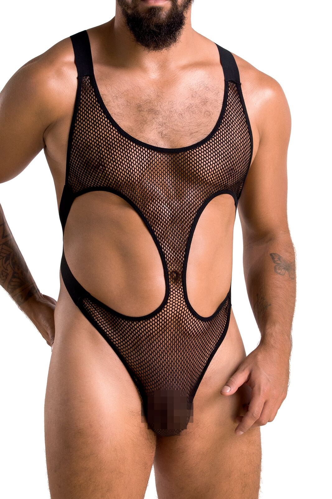 Чоловіче сітчасте боді Passion Leon виконано з великої сітки спереду й широких резинок ззаду, перехрещених таким чином, що сідниці залишаються відкритими. На передній частині в боді є два великі вирізи з боків. Тканина красиво лягає на всі вигини тіла завдяки резинкам.