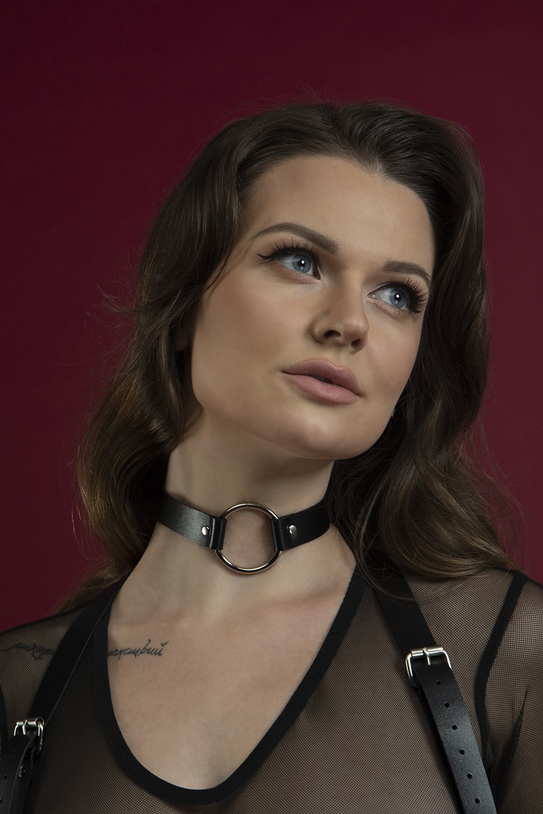 Шкіряний чокер чорного кольору, прикрашений металевим кільцем, точно знайде своє місце у вашій колекції аксесуарів. Виготовлений з високоякісної шкіри рослинного дублення, красивий і приємний на дотик.