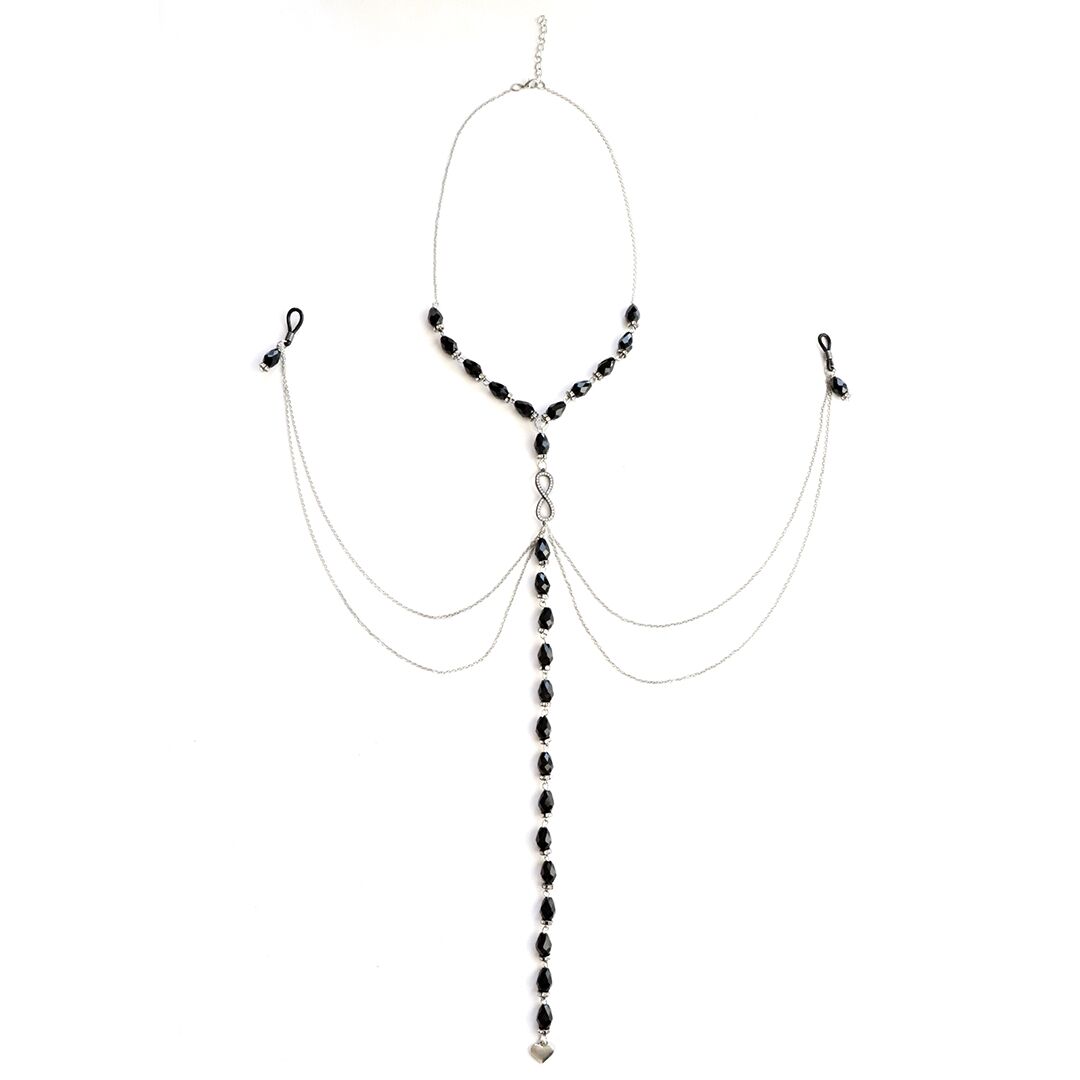 Незвичайна інтимна прикраса Art of Sex – Night mood, що поєднує в собі розкішну красу кристалів і витонченість тонких металевих ланцюжків. Прикраса кріпиться на сосках за допомогою силіконових петельок, тим самим унеможливлюючи будь-який дискомфорт і травматизм ніжної зони. Ця прикраса для сосків стане прекрасним доповненням до відвертих комплектів спідньої білизни, рольових костюмів або витончених суконь з глибоким декольте.