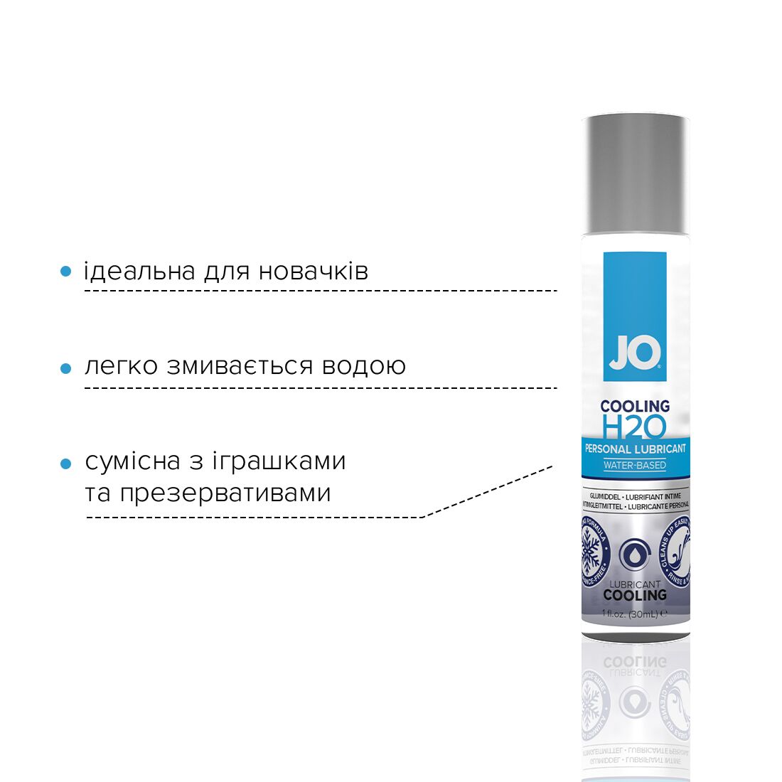 Змазка на водній основі System JO H2O — COOLING (30 мл) — це інтимний лубрикант на водній основі, що використовується як доповнення до природної змазки. Виготовлений із використанням гліцерину виключно рослинного походження, цей лубрикант, що користується великою популярністю, забезпечує комфортне ніжне ковзання й не залишає відчуття липкості.